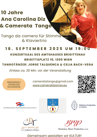 Ana Carolina Diz & Camerata Tango Jubiläumskonzert Eintritt: freie Spende Ort: Antonio Vivaldi Saal, Johannesgasse 8, 1010 Wien Mehr Infos dazu unter Camerata Tango |